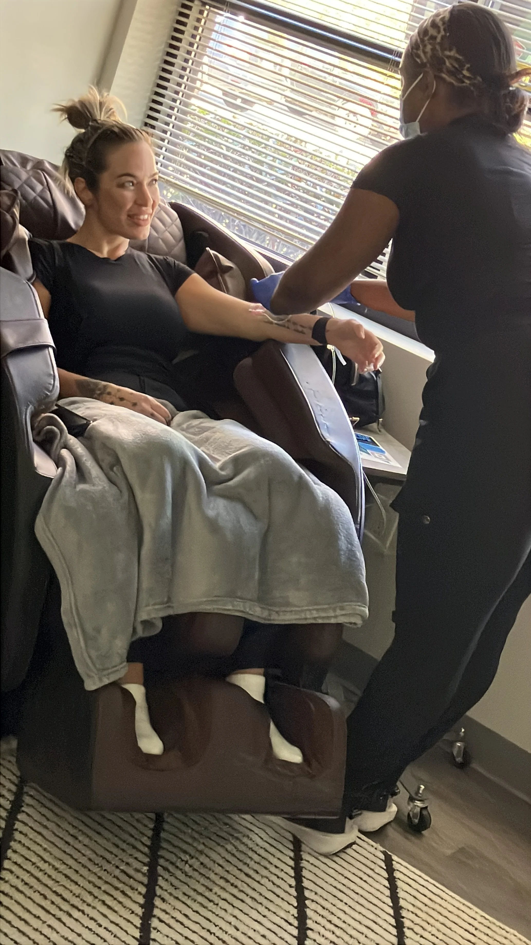 Our RNs are experienced emergency department nurses. They are experts at finding veins, and they love taking care of you. To give us the best chance for success, try drinking two glasses of water within thirty minutes of coming in. Sometimes we cannot get access a vein. If that’s the case, we would love to treat you to a healthy drink or feel free to request a B12 or Tri Immune shot instead.