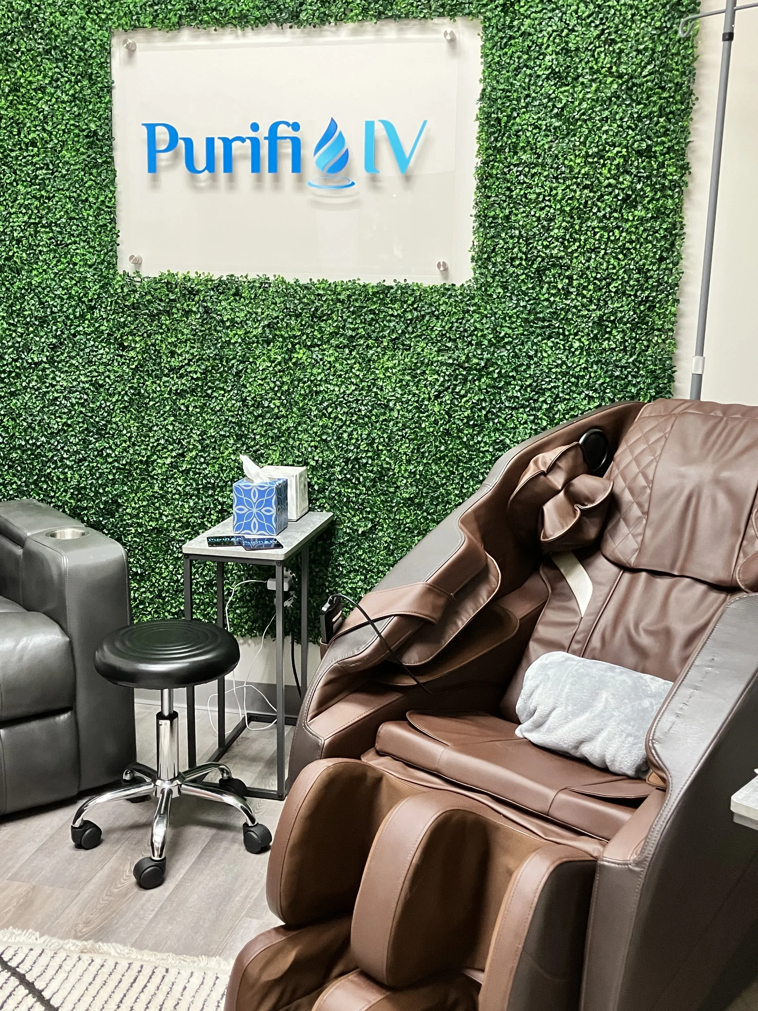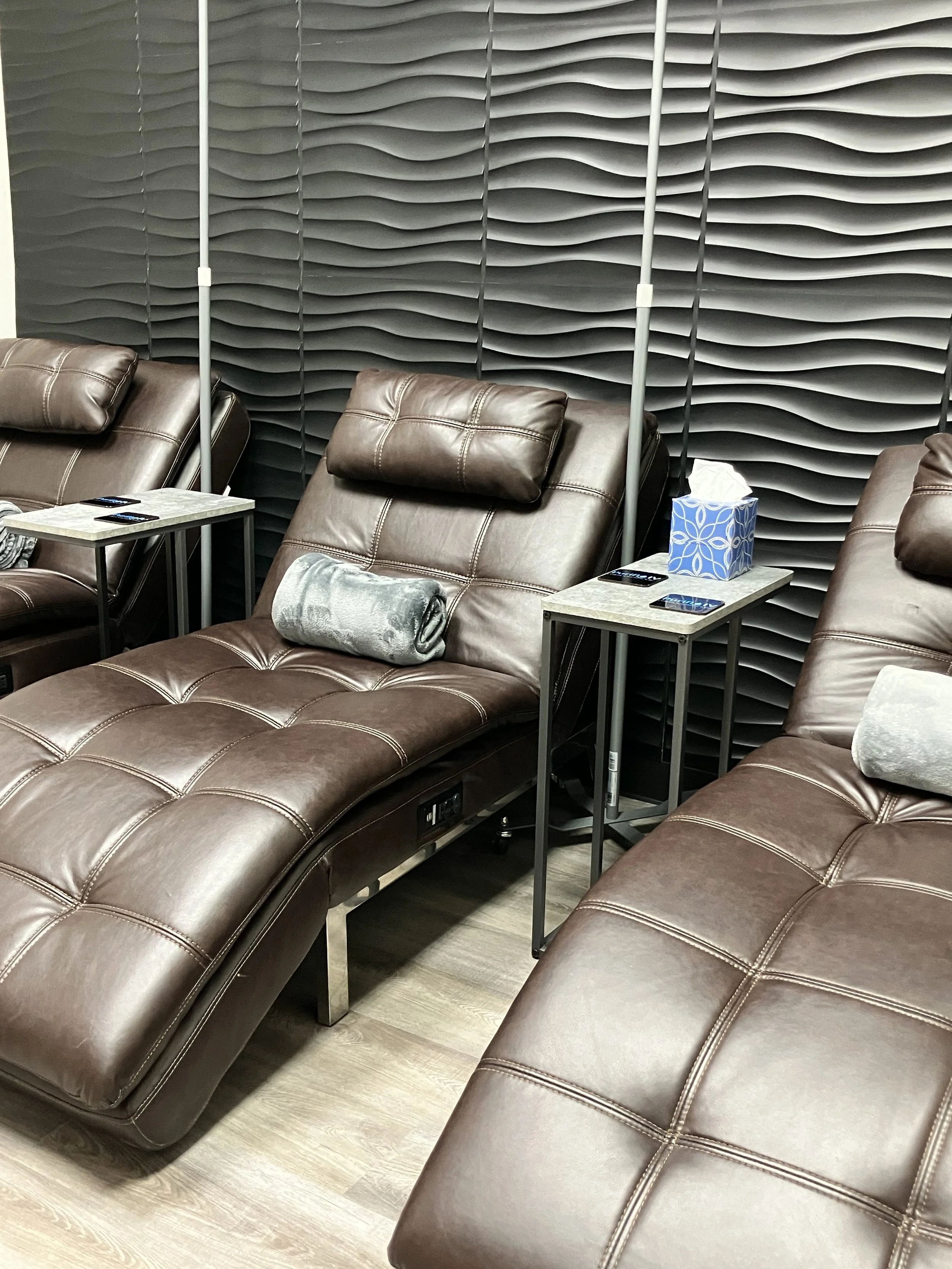 Grab one of our iPads and Beats headphones and enjoy some relaxing time alone. We have wi-fi and streaming for you to enjoy. Or head to the lounge for a larger TV experience. Our favorite thing to do during a drip is enjoy a massage in the zero gravity massage chair in the lounge. You are also welcome to bring your computer or books to work on your hustle while you fuel your body. Grab a healthy drink or snack, too, if you like!